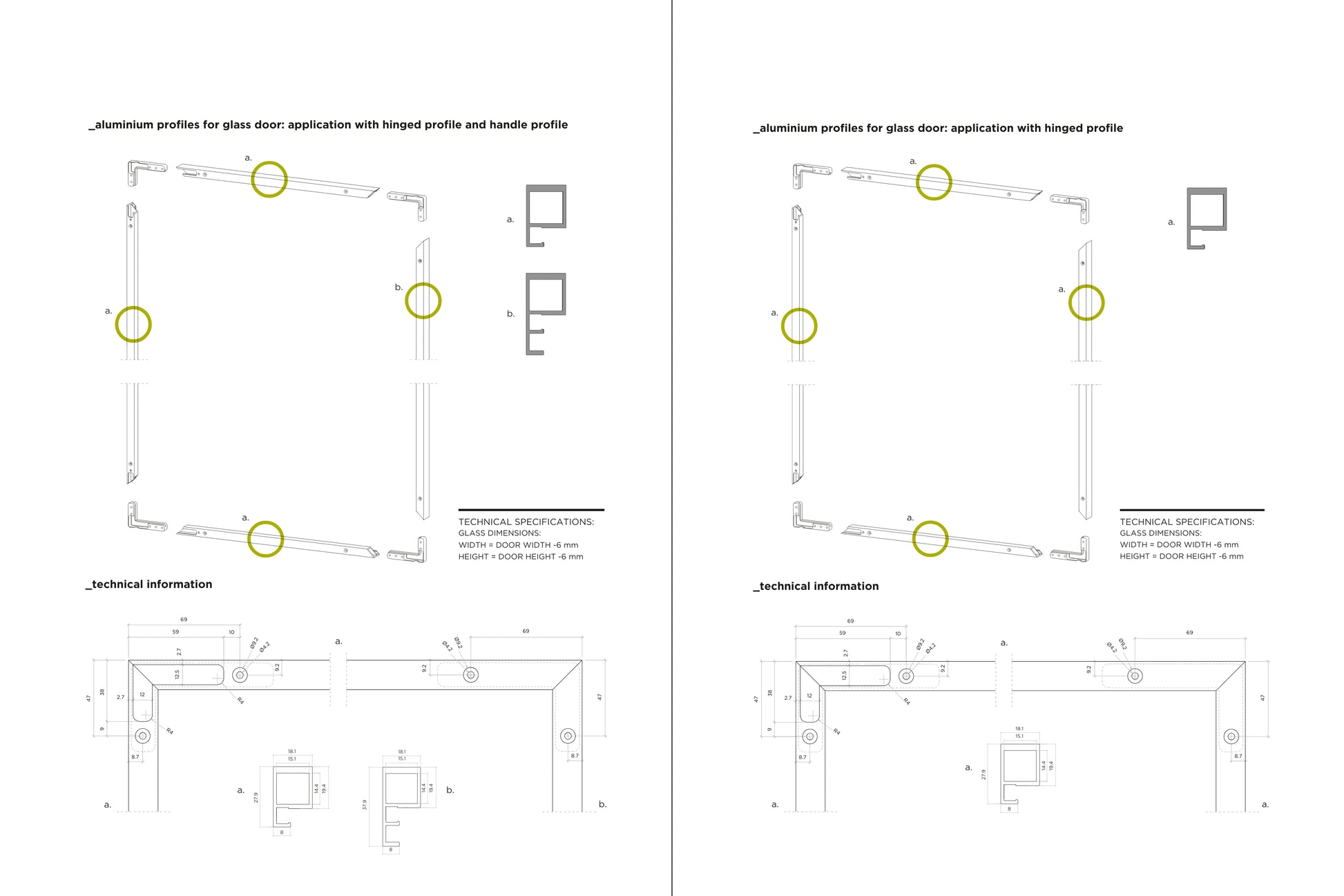 Aluminium door frame for display units or other joinery for recessed hinges 20kg.