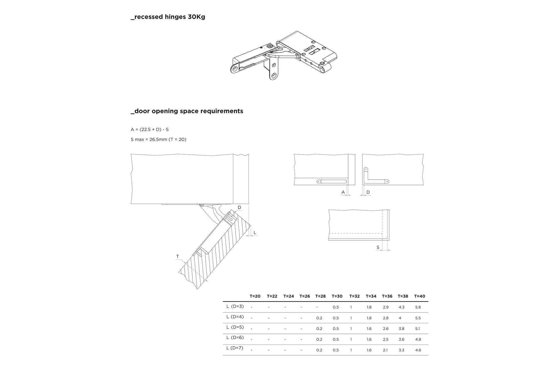 - Maximum door weight: 30kg