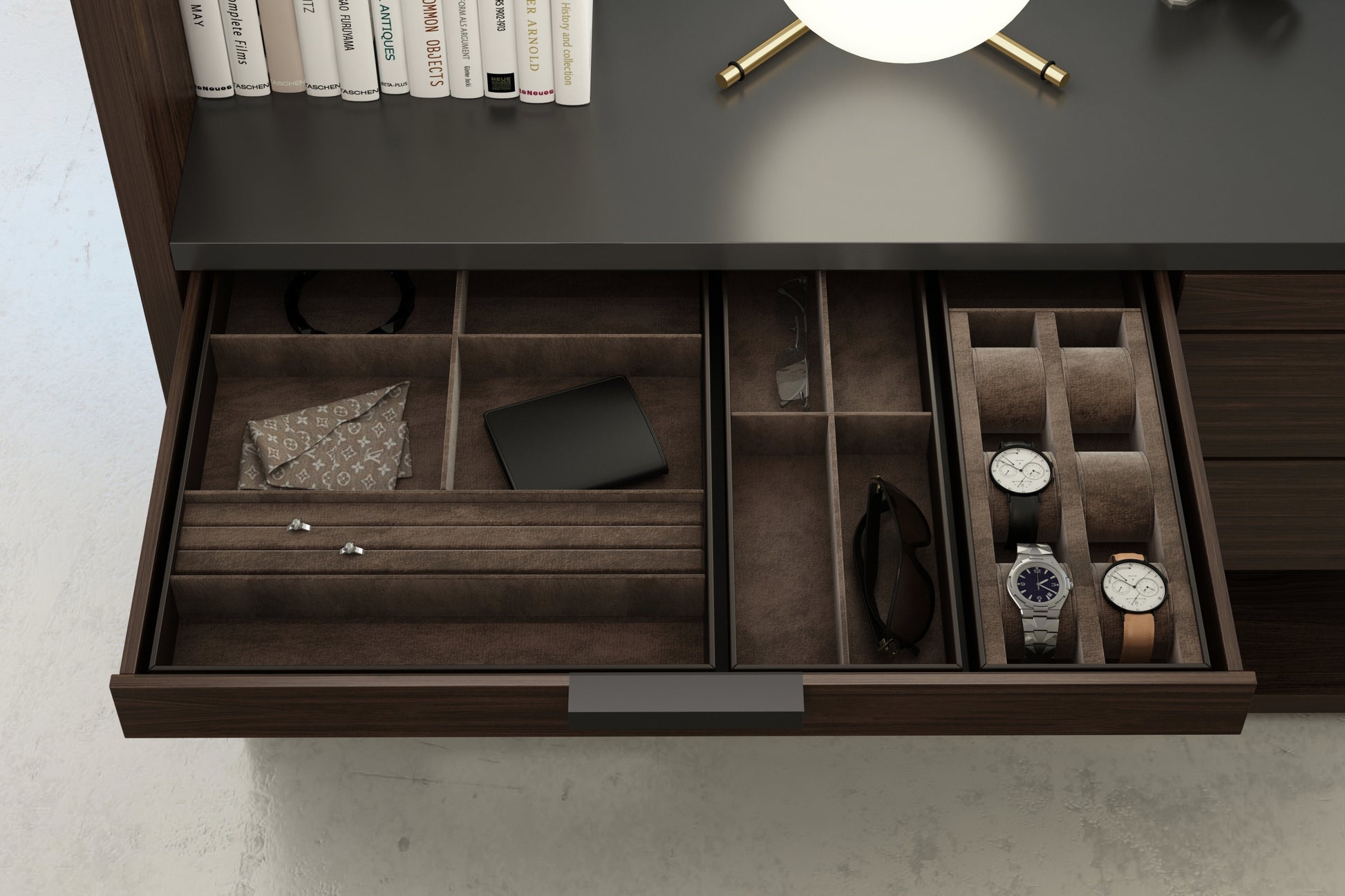Keep your wardrobe and sideboard drawers beautifully organised with our Velvet Earrings Tray Insert, available in two colour combinations, Grey and Moro Brown.
